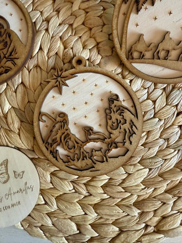 ✨ Bolas de Navidad en madera – Escenas de la Natividad
