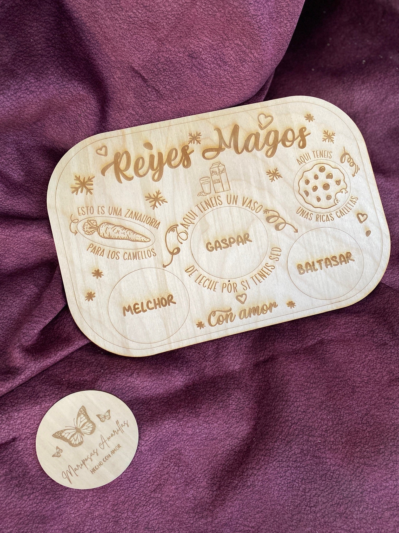 👑✨ Bandeja de Madera Grabada para los Reyes Magos - Personalizable con nombre
