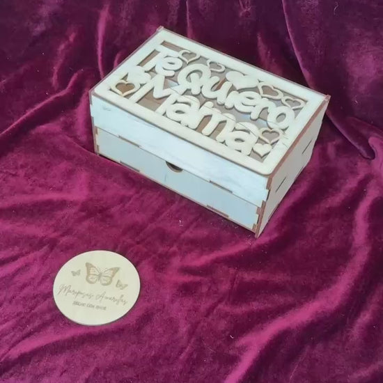 • Corte láser en la tapa con el mensaje “Te quiero mamá”