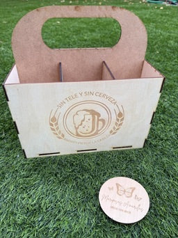 🪵 Cesta de Madera Artesanal para 6 Botellines de Cerveza – Personalizable