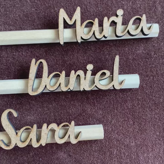 • Nombre personalizado cortado con láser en la madera