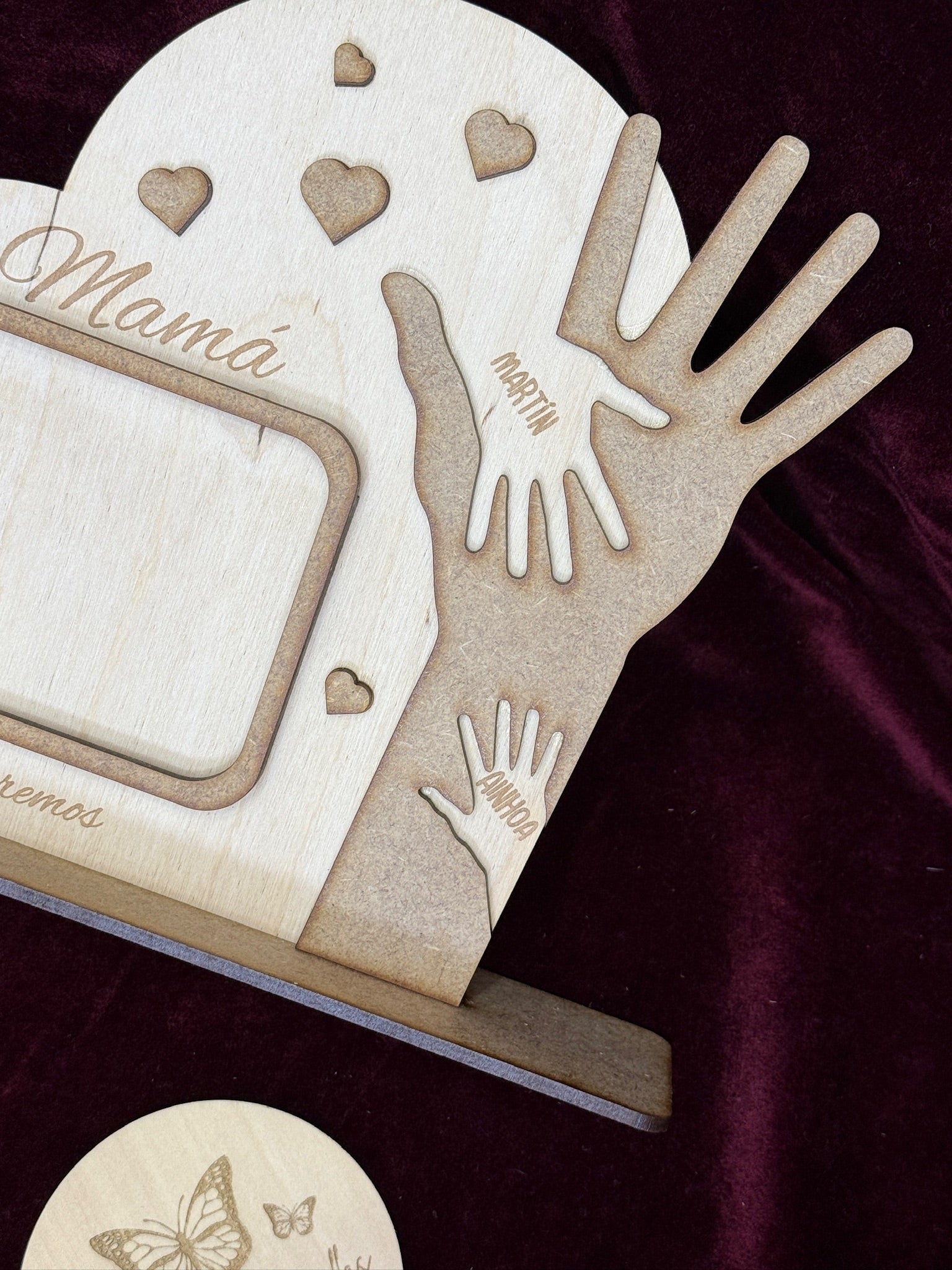 • Mano de mamá en capa adicional de MDF, para mayor contraste y relieve