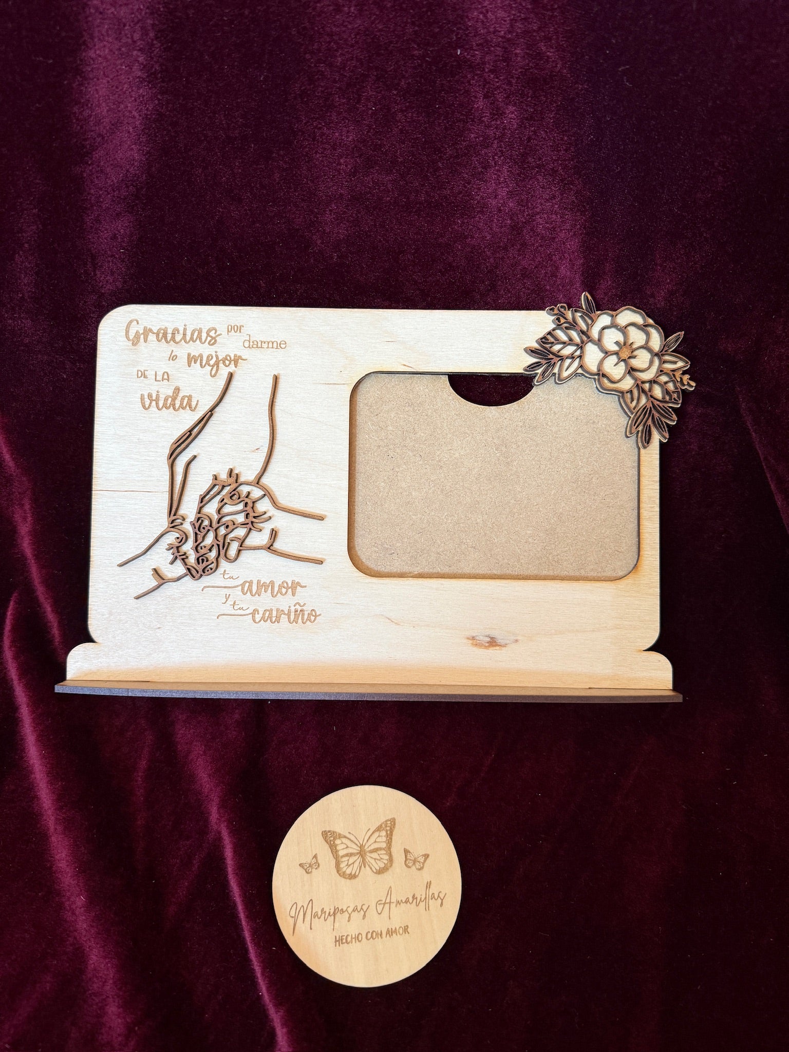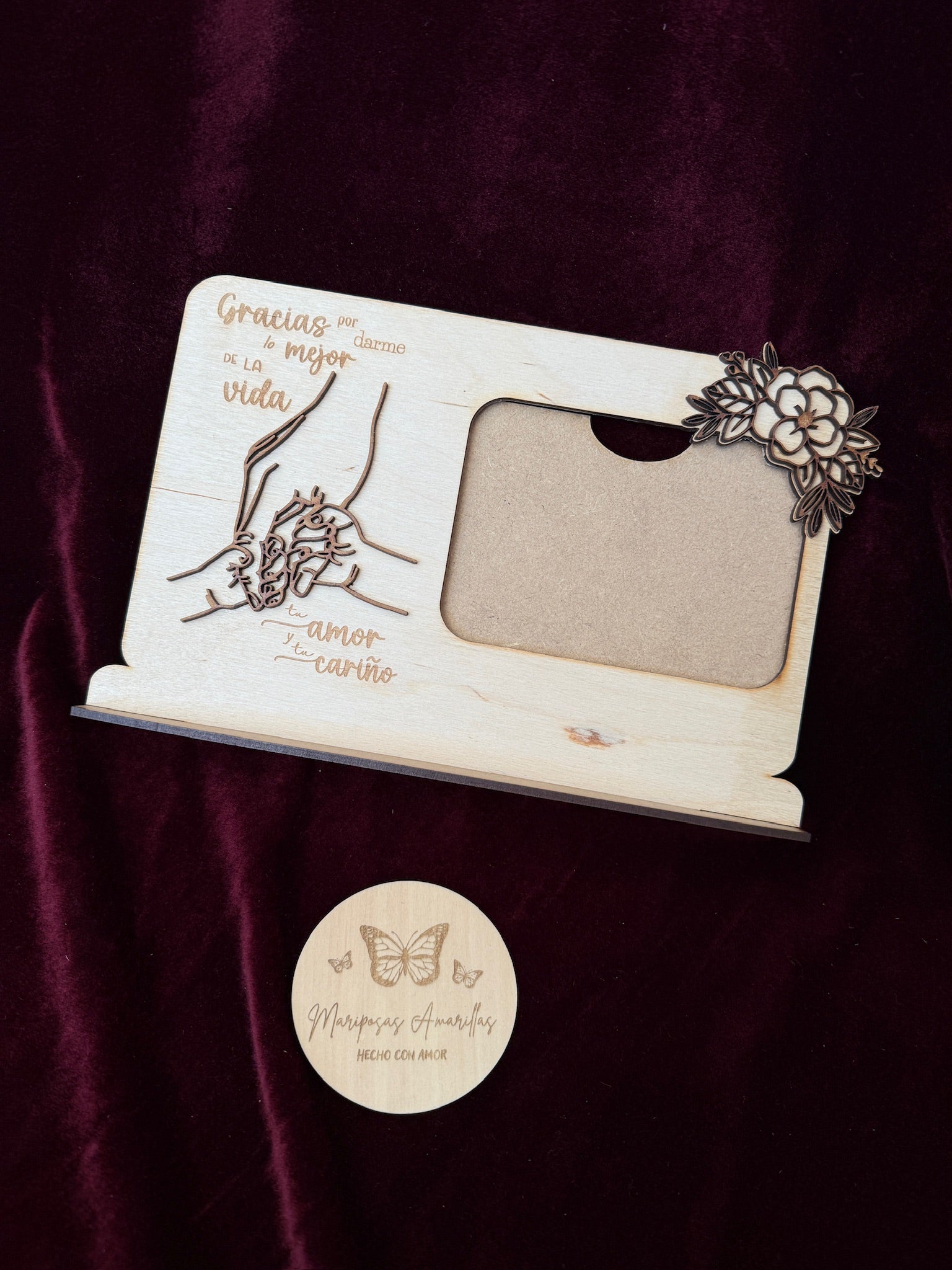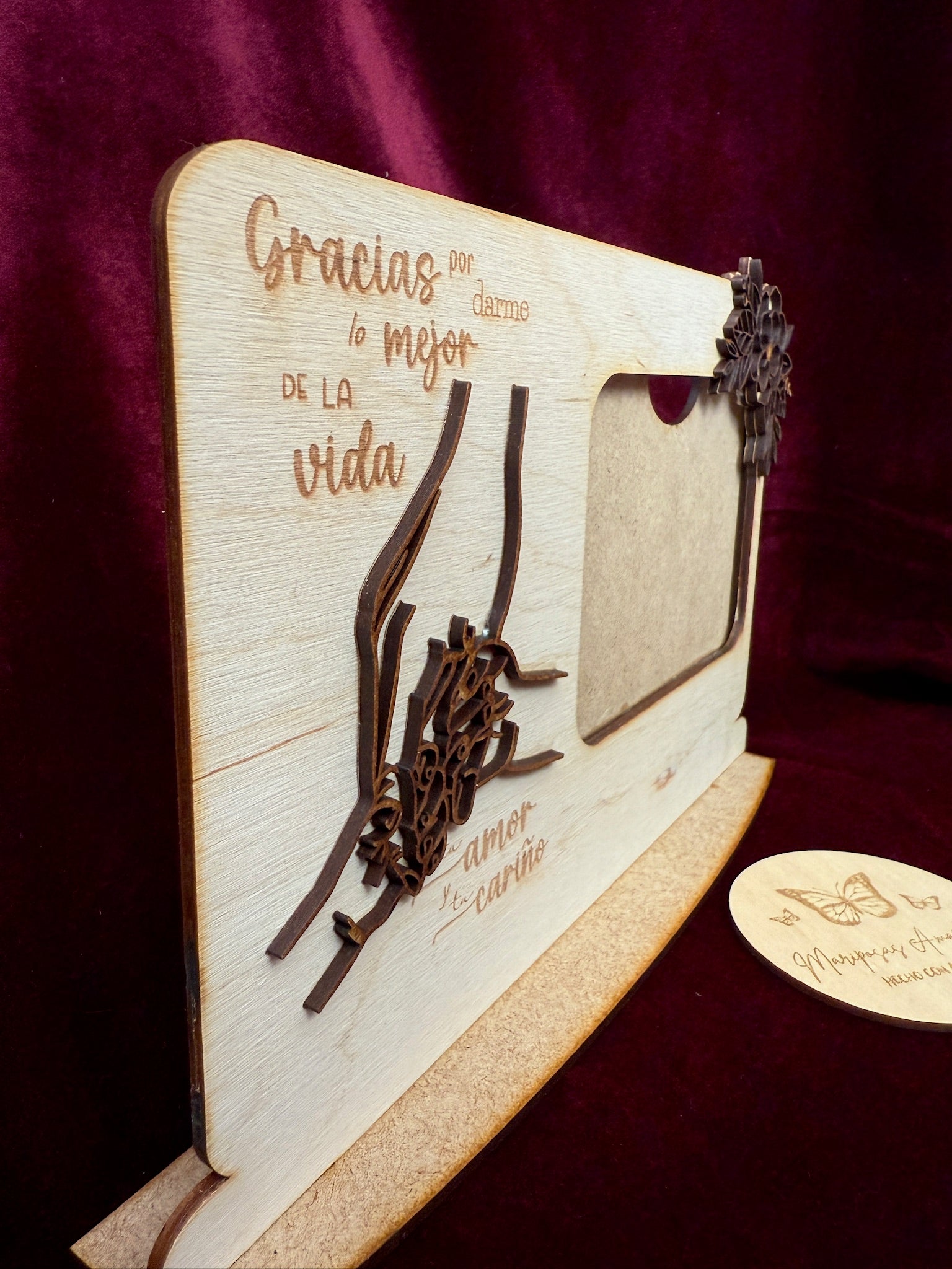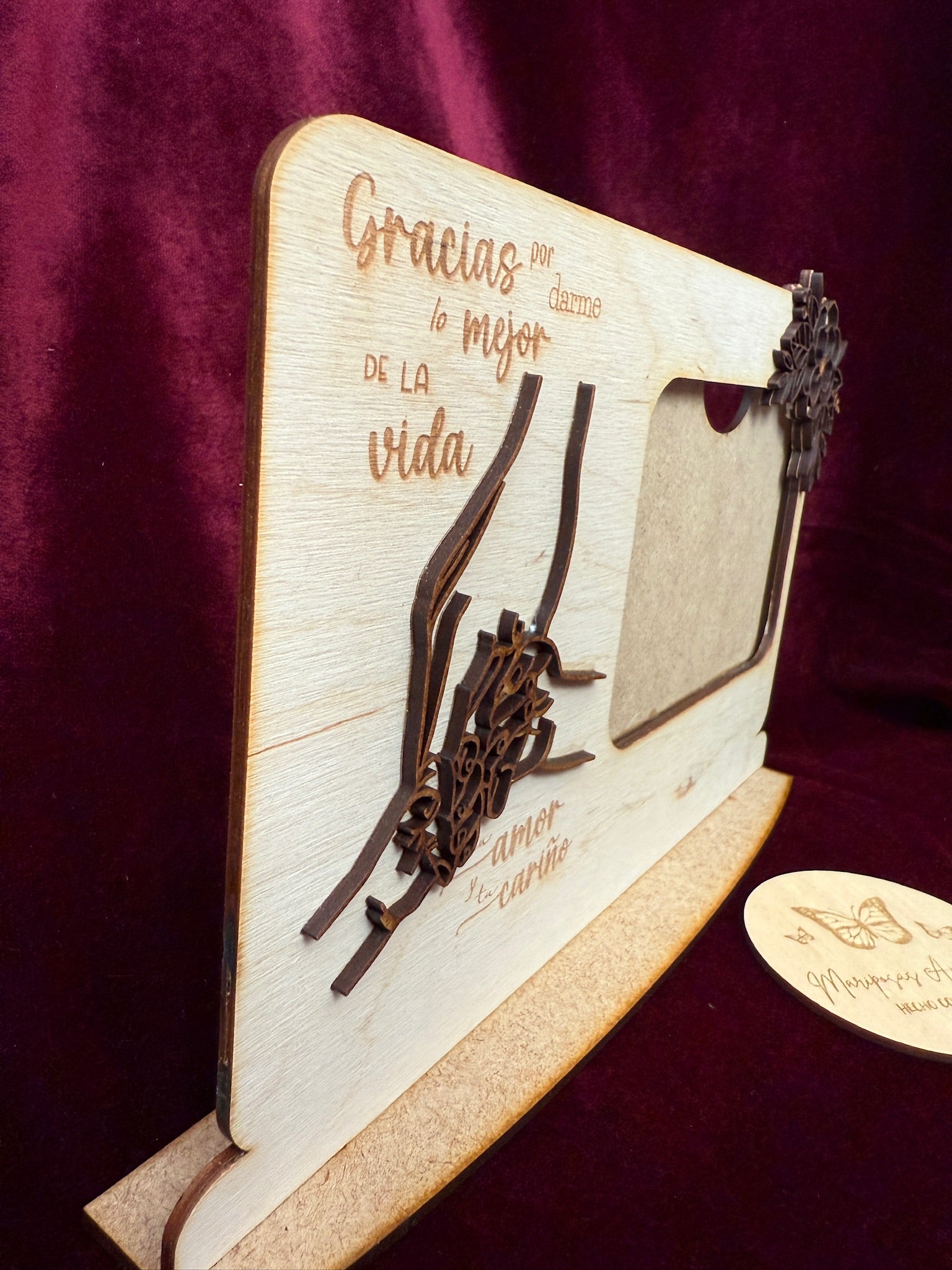 Perfecto para enmarcar una fotografía significativa, este diseño no solo embellece cualquier espacio, sino que también transmite un profundo mensaje de cariño y gratitud.