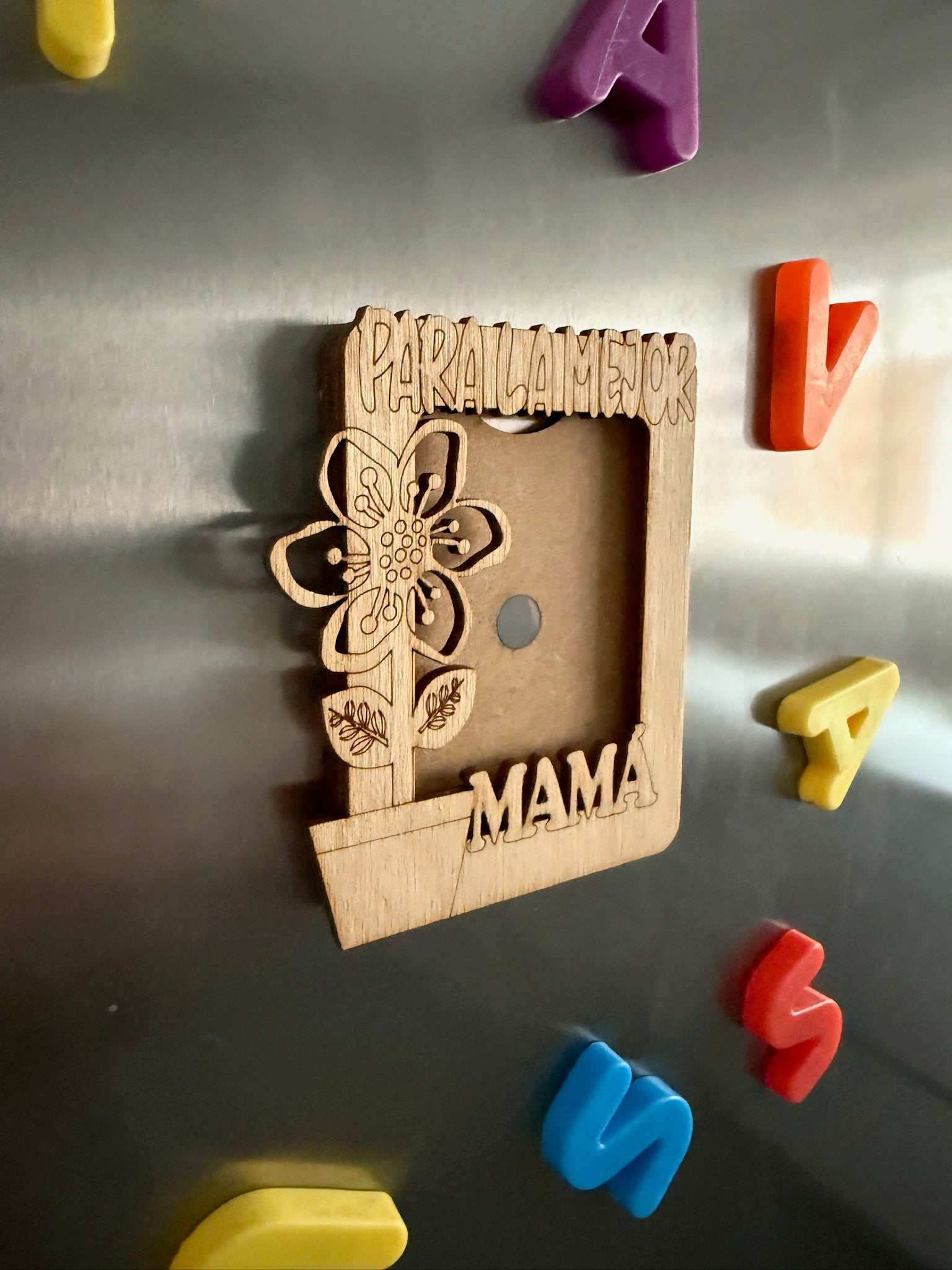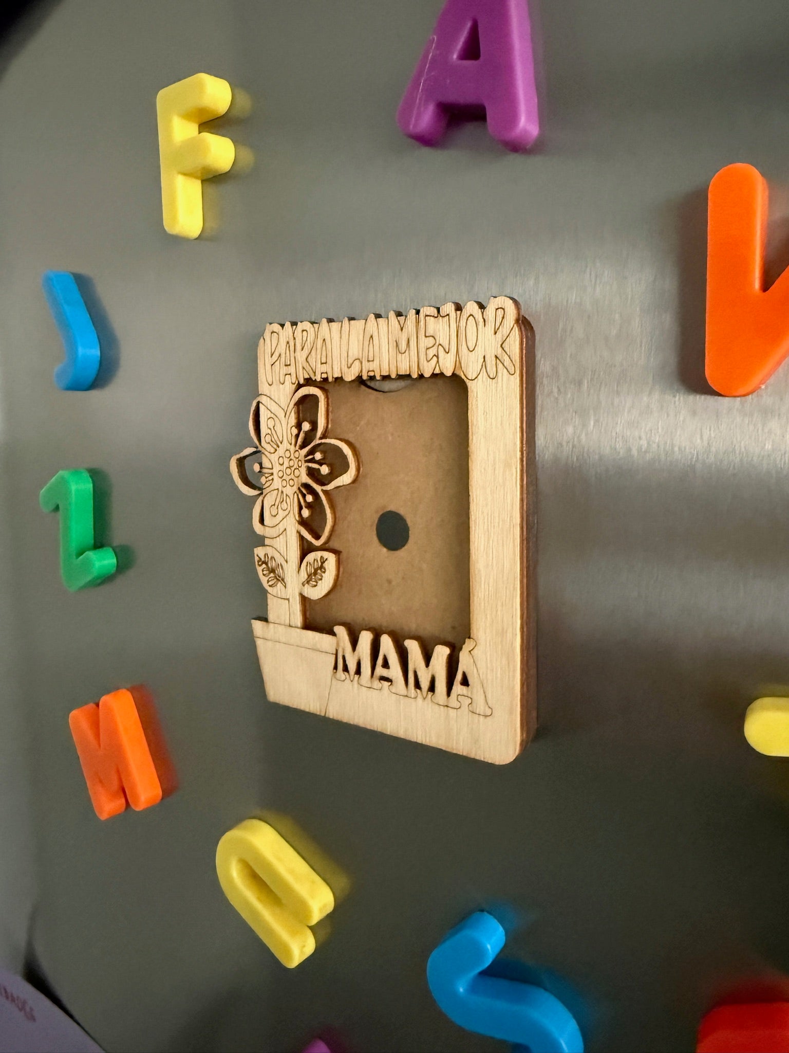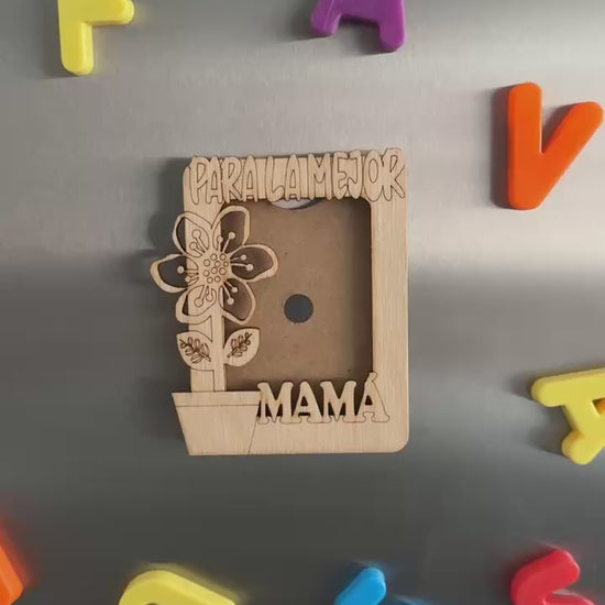 Este encantador marco imantado está hecho de madera natural de abedul y decorado con una tierna maceta con una flor, símbolo del cariño que crece cada día. Grabado con la frase “Para la mejor mamá”, es el regalo perfecto para recordarle cuánto significa para ti.
