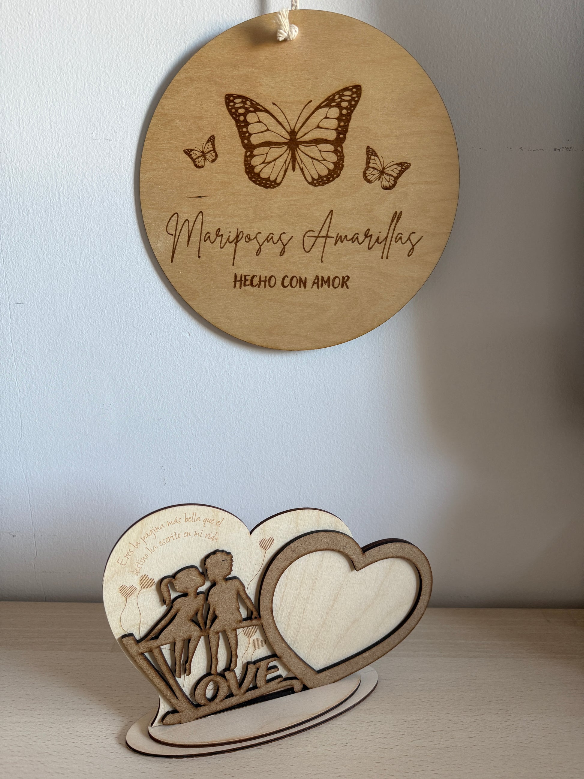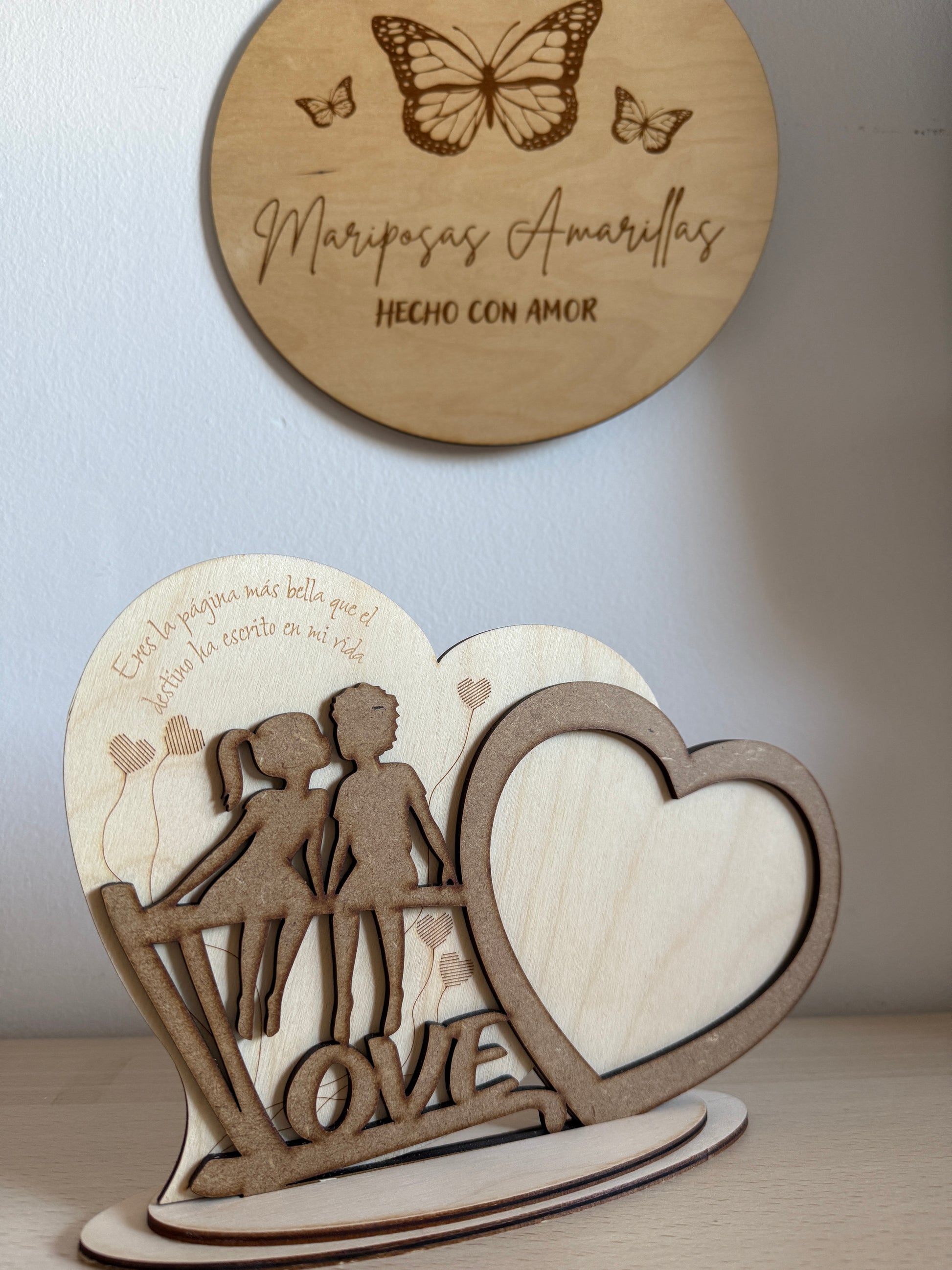 Celebra el amor con este encantador marco de fotos en forma de corazón, elaborado en dos capas de madera (abedul y MDF) que le dan cuerpo, profundidad y un acabado cálido y elegante.