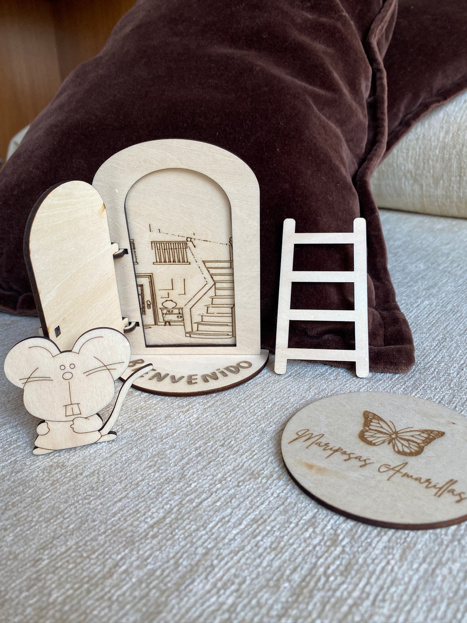 Convierte una noche cualquiera en un recuerdo inolvidable con esta encantadora puerta del Señor Pérez, hecha a mano en madera de abedul y grabada con láser con todo detalle.